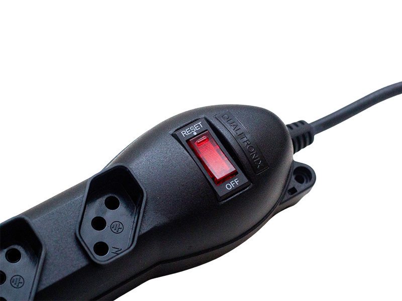 Filtro de linha QFL5B 4 tomadas: bivolt 10A, disjuntor (circuit breaker) resetável, proteção EMI/RFI, padrão ABNT.